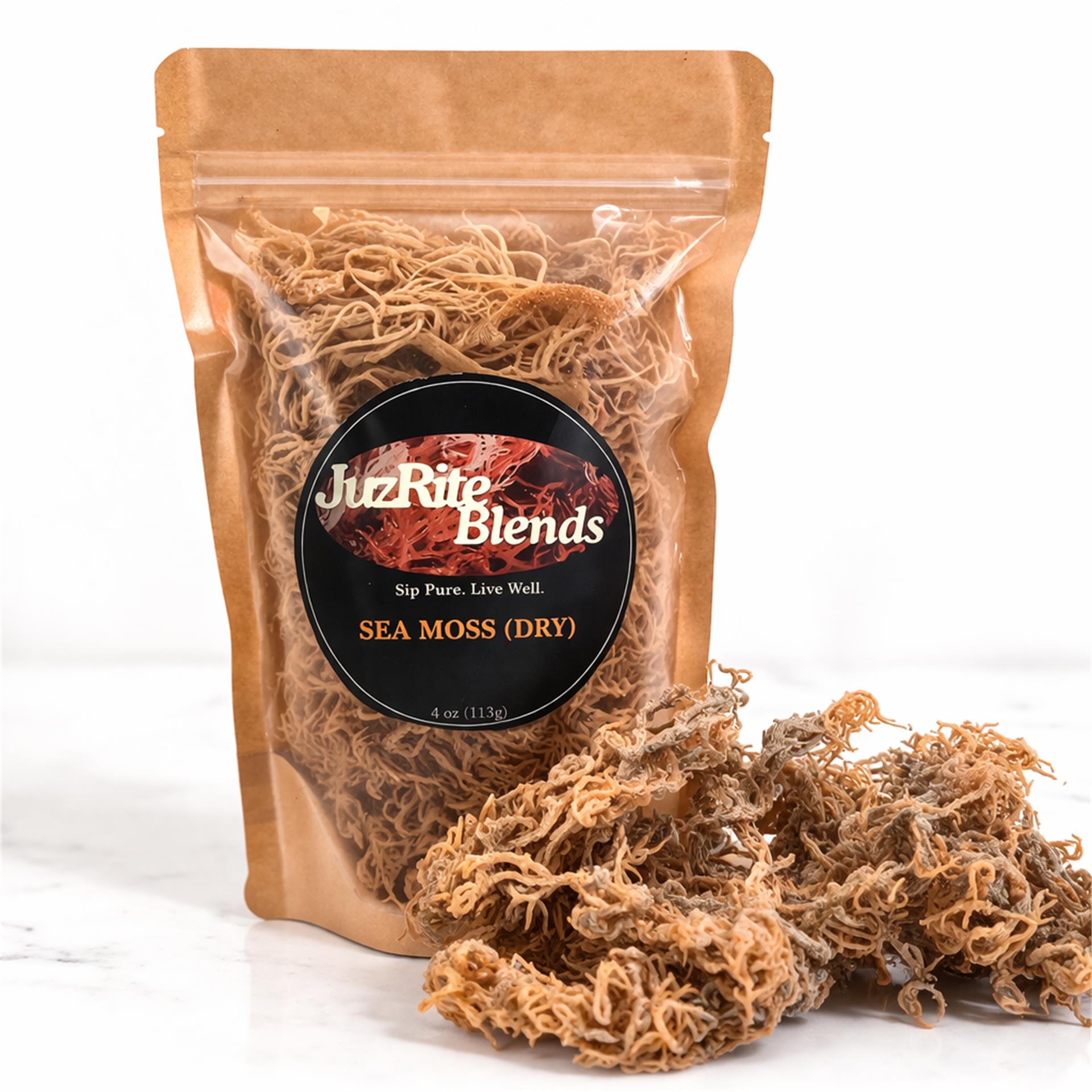 Ocean-grown mineral rich dried sea moss, a natural Caribbean superfood used to make nutrient rich gels, smoothies, teas and wellness drinks.